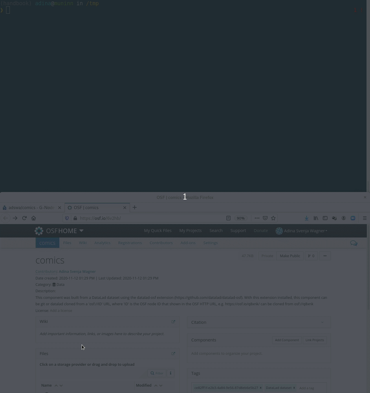 $ datalad siblings -d "/Users/wittkuhn/Desktop/cartoon-collection" enable -s seafile
