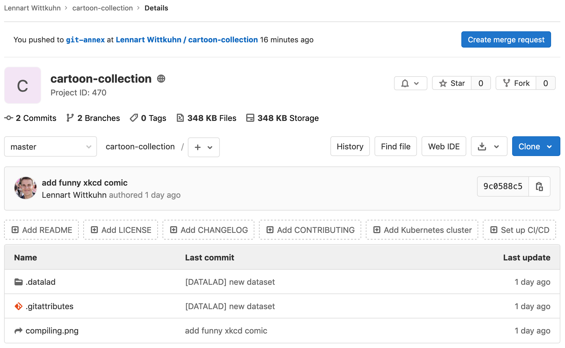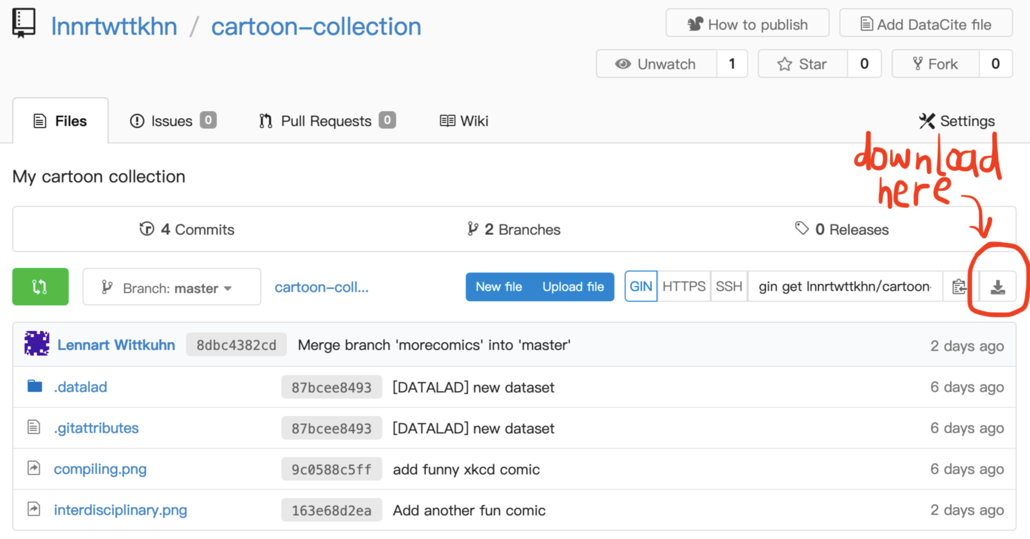 $ datalad save -m "Add another fun comic" interdisciplinary.png