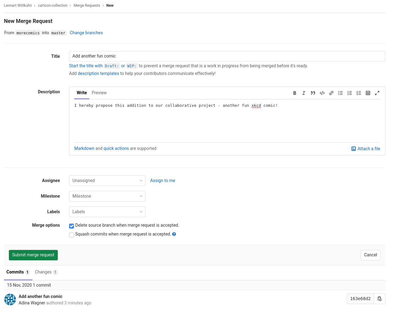 $ git checkout -b morecomics