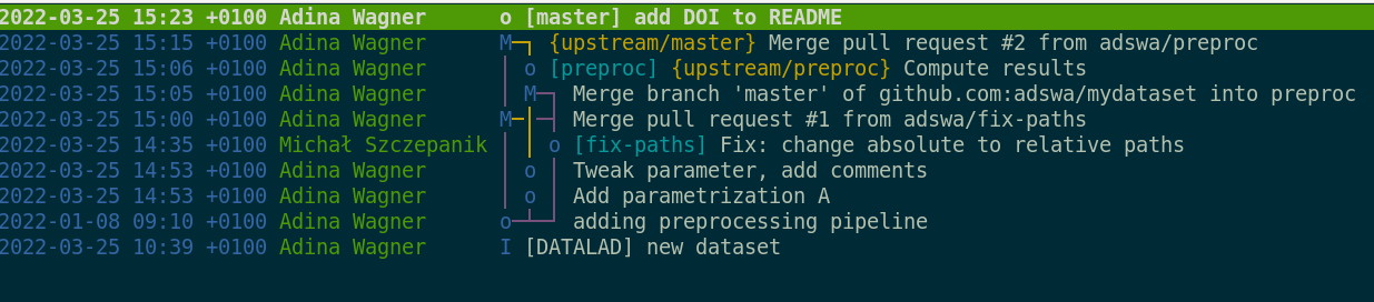 (datalad) adina@juseless in ~/scratch/mydataset on preproc+ (merge)